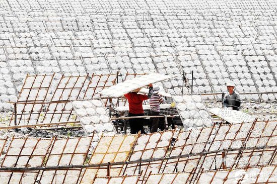 点评:这是生态环境良好、农民勤劳致富的大晒场。整幅作品构图饱满,大面积白色的榨面烘托了人物生动劳作的场景,人物主体十分突出。