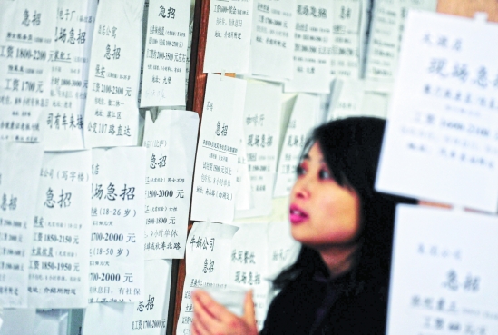 浙江在线12月31日讯 昨日,杭州外来劳动力服务中心内,一家职业介绍所的工作人员站在写满“急招”字样的招聘广告前,等待求职者。