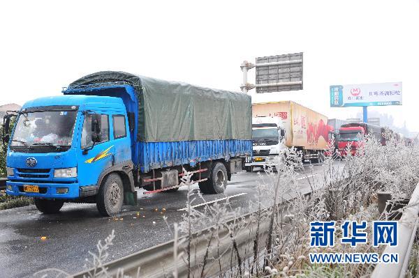 1月2日,在贵州省贵(阳)黄(果树)高速公路狗场段,滞留的车辆排起长队。当日,贵阳的最低温度为-4℃,由于大范围的凝冻,贵州贵(阳)黄(果树)、贵(阳)遵(义)、贵阳绕城高速等多条高速公路封闭。 新华社记者杨楹 摄