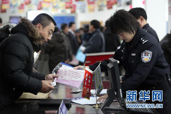 资料图片:12月23日,在北京车管所京丰分所,车管所的工作人员帮助市民办理业务。新华社发(杨乐 摄)