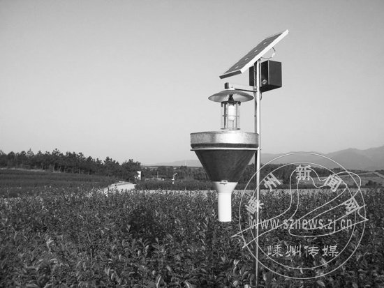 据悉,黄泽明山茶场从现在开始,到明年开春,将在“越乡龙井”名优茶园里安装上百台这样的太阳能灭虫器。