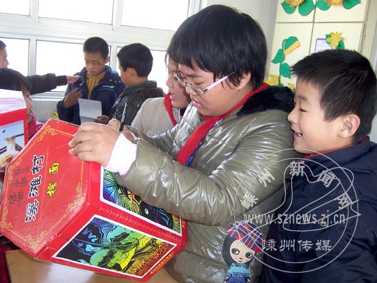 镜头之三:一项环保作品征集活动。全校学生利用废弃的纸盒等创意设计制作“灯笼”并进行展示,红红火火迎新年。