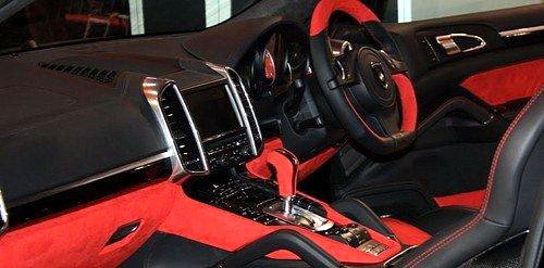 内饰方面,红黑配色的内饰很是犀利,带有Merdad标识的转速表也很漂亮。动力方面,这款新的保时捷卡宴在原有的500马力功率输出基础上提高了50%,达到了750马力,使这个大家伙百公里加速时间为4.4秒。