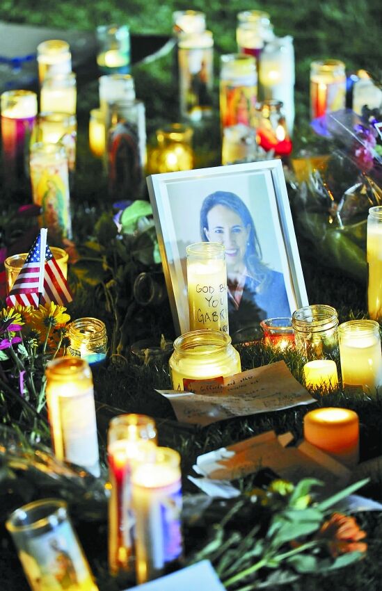 1月8日,在美国亚利桑那州图森市的亚利桑那大学医疗中心外,当地民众点燃蜡烛祝愿受重伤的加布里埃尔·吉福兹早日康复。