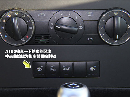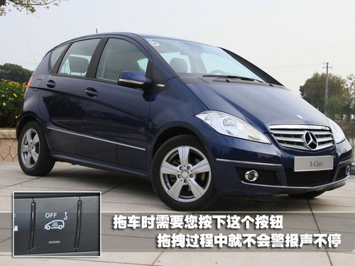 奔驰A级轿车选择了高品质的装饰面料和车门内衬,凸显舒适惬意的设计风格,A180则采用了真皮内饰以打造豪华的车内空间。可以说A级车的基本配置还是比较高的,四门一触式升降车窗、前排三级座椅加热、定速/限速巡航、自动大灯和灯光高度车内调节。这些配置在如今看来依然称得上是20余万元车型的主力配置。但是一些细节方面也存在让人不太满意的地方。拖车是请您按下上图按钮,防止报警声打扰他人。