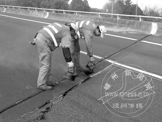 同时,投入力量对常台高速上嵊段进行全面灌缝处理,保障春运期间路面平整、安全,确保过往司乘人员行车安全。