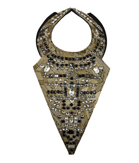 这条惊人的3.1 Phillip Lim大项链由美丽的黄金珠,再加上大大小小,造型各异的黑白灰三色水晶点缀,层次错综复杂,有着埃及般的神秘华丽,大牌范儿十足。