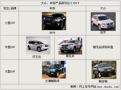 SUV车型的大热是一个必然的趋势,而现在已经成为了最大的一块“鲜美的螃蟹肉”。在这部分市场,大众的表现在小型SUV和和大型SUV两款市场都有建树,可以与丰田“RAV4+兰德酷路泽”的组合抗衡,但在中型SUV部分没有推出相应车型。