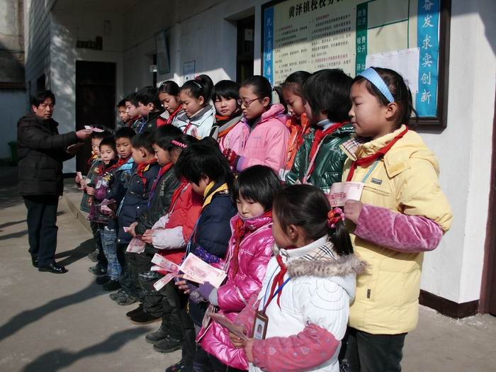 1月13日,正当春节将要来临之际,黄泽工商所、个体劳协、镇关工委及为学校连续捐助24年如一日,从不间断的市政协委员徐孝德等同志,带着爱心款来到黄泽镇中、镇校等单位,现场为贫困学生分发每人不少于300元的资助金。