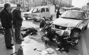 近日,嵊州的一辆出租车像老虎一样“吃倒”了一辆电动自行车,电动自行车上的两位老者全躺在马路上。春节快到了,开车出行文明些,多注意礼让,多一份安全就多一份快乐。