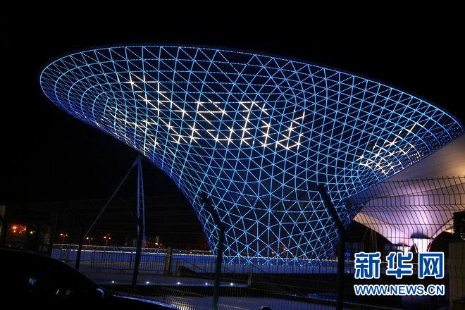世博轴上打出的“Benz”LED灯光