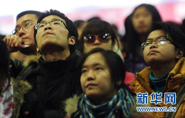 1月10日,旅客在成都火车站购票厅查看票务信息。