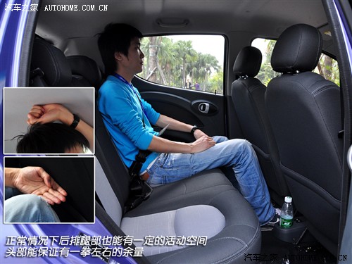 奔奔MINI能够热销的另一个原因相信和它较为宽敞的乘坐空间有关,对于身高达到180cm的体验者来说,坐在驾驶位依然可以拥有一拳半的空间,而后排的头腿空间也都达到了四指的水平,这样的空间表现要明显好于绝大多的同级车型。