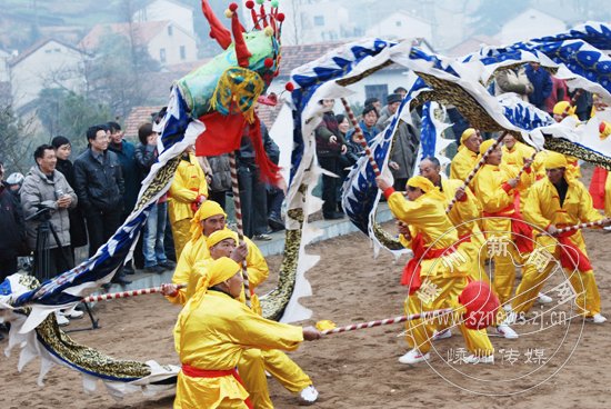 图为玠溪村舞龙队正在表演《龙腾虎跃》。