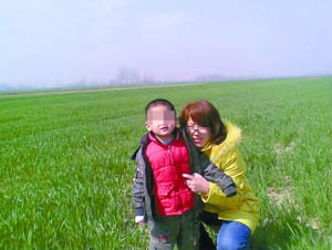 陈先生介绍,儿子单独拍的那张,是2009年在宁波庆安会馆对面的草地上照的。母子合拍那一张,是有一年清明节他们在老家连云港的一块麦田,用手机拍的。