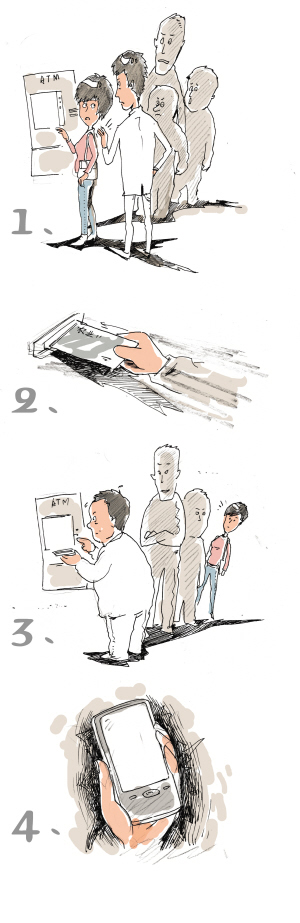 一分钟后,站在队伍末尾的刘姑娘听到手机连续响,一看,不得了,全是农行信使提醒:“您的账户支出2000元”、“您的账户支出2000元”……