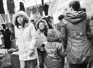 1月20日,嵊州市下王镇举行了新年的乡镇集市日,虽然天下着雪,群众赶集的热情却丝毫不减。图为集市日购物现场。