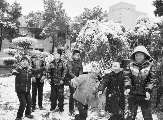 1月20日起,嵊州市的小学生们开始进入新一年的寒假,今年的寒假与往年不同的是,冰雪世界成为假期的开始,城里乡下学生们在雪地里堆雪人、打雪仗乐翻天。图为1月21日,几位小朋友正在一家院子里玩雪。