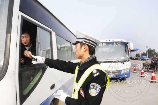 自1月19日春运工作开展以来,我市交警部门严格按照要求,设立春运检查站,对营运客车进行检查登记,实行全程全天候动态监管,确保春运期间“降事故、保安全、保畅通”。图为记者在甘霖检查站拍摄的镜头。