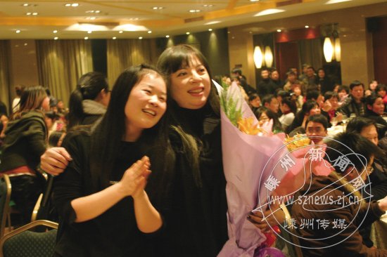 图为台湾籍的中国十大著名设计师、亚洲针织女王潘怡良(右)和河南籍的优秀设计师张华在年夜饭上的灿烂笑容。