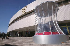昨日下午,央视春晚演播厅大门外,出现了一个巨大的花柱形玻璃屋。据里面的工人介绍,这是专门给兔年春晚安装的媒体采访屋。