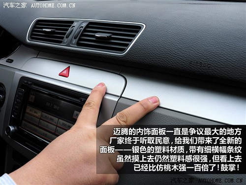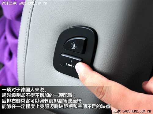 迈腾的2709mm轴距是一个困扰已久的问题,一汽大众虽然早在国产迈腾上市之初就已经生产出了加长版实车,但由于种种原因并未上市销售。而2011款迈腾顶配车型选择在副驾驶席的靠背左侧安装一个与座椅调节联动的按钮。有了它,坐在后排右侧的乘客可以主动控制前座的距离以及靠背角度。虽然这项功能没有什么技术含量,但却能看到厂商对消费者的反馈做出了积极回应。