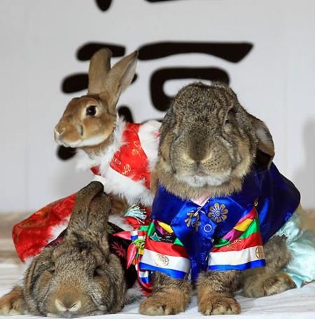 据悉,位于韩国京畿道龙仁市的爱宝乐园准备从12月31日起,以“兔子与乌龟”为主题,展出近100只兔子,迎接2011年兔年的到来。
