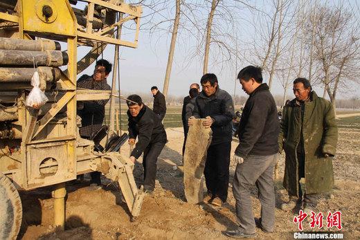 图为山东省成武县抗旱打井服务队正在地头打井,为实现“以河补源、以井保丰”奠定基础。杨东亮 摄