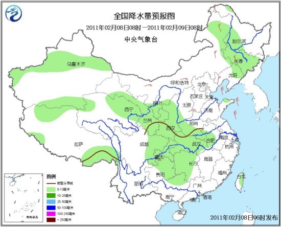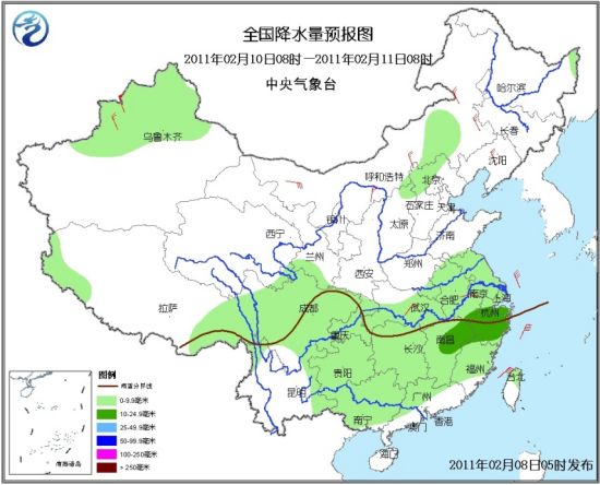 伴随着冷空气的到来,8日夜间起,中国南方地区将出现明显的雨雪天气过程,其中黄淮西部和南部、江汉、江淮的部分地区将有雨转中到大雪。