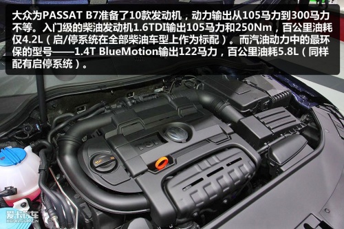 原版B7将会匹配10款不同的动力总成,包括清洁的入门级1.6升TDI柴油增压发动机以及汽油动力中的最环保的型号——1.4T BlueMotion,最大功率输出为122马力,百公里油耗5.8L(同样配有启停系统)。