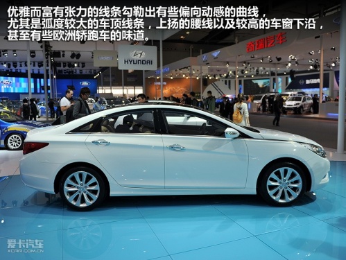 新索纳塔前脸造型非常动感,前格栅和大灯都营造了一种很强的前冲感,很有劳恩斯酷派的味道,从前脸看更像是一款轿跑车。与造型前卫的前脸相比,新Sonata的侧面和尾部则要中庸很多,尾部设计与悦动有几分相似。