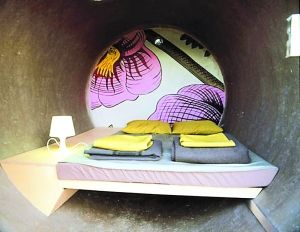 奥地利多瑙河畔,有三个排水管道被改造成名叫“Das park hotel”的迷你旅馆,每个排水管道重10吨直径都达6.5英尺,空间极其狭小,整间房子只够放下行李和一个电源。但里面有少量家具满足基本需要,一盏灯,一个床垫,有几个睡袋,和一扇可以上锁的门。