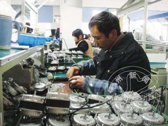 位于甘霖镇西湖头工业园的嵊州凯力电器设备有限公司,是一家生产冷柜风机的规模企业,自2002年创办以来,从第一年的140万元产值发展到了年产值3000多万元的规模企业。该公司奉行“战胜自己、完善自我、团结向上、和谐自我”的经营理念,做到9年办厂没有一件库存产品。图为生产车间的员工正在聚精会神地工作,确保产品质量合格率达到100%。