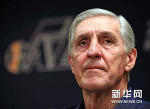 2月10日,犹他爵士队前主教练斯隆在美国盐湖城举行的新闻发布会上。NBA史上执教同一球队年头最长的主帅——69岁的斯隆宣布放弃执掌爵士队长达23年的帅印。跟随斯隆23年的助理教练菲尔·约翰逊同一天与老友斯隆一起也辞了职。爵士队同时宣布,助理教练蒂龙·科尔宾将出任球队的过渡期主教练。新华社/路透