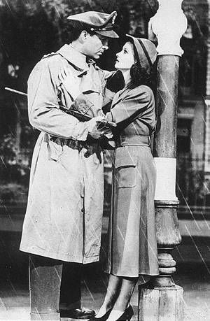电影《魂断蓝桥》片段,费雯丽身穿风衣。