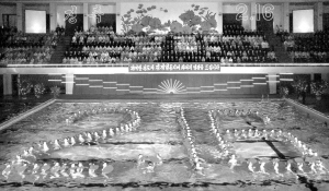 朝鲜15日在平壤举行花样游泳表演,庆祝朝鲜最高领导人金正日诞辰69周年(2月16日)。 新华社发