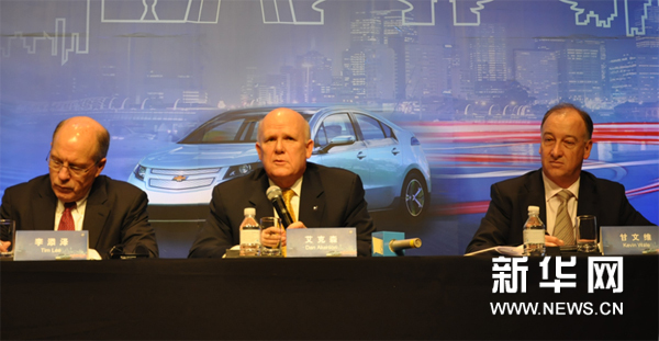 2月15日,通用汽车董事长兼首席执行官艾克森(中),通用汽车(中国)总裁甘文维(右)等通用高层在北京举行首次中国媒体见面会,这也是艾克森履新后第一次亮相中国。