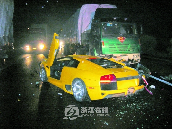 2月15日晚上10点左右,就有一辆价值700万元的兰博基尼被半挂车撞了,一下损失近400万元。