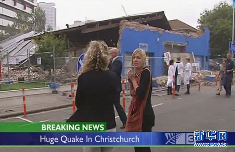 这张2月22日发布的电视截图显示在新西兰南岛城市克赖斯特彻奇,人们从被地震损坏的建筑物内撤离。新西兰南岛最大城市克赖斯特彻奇22日12时51分(北京时间7时51分)发生里氏6.3级地震。 新华社/路透