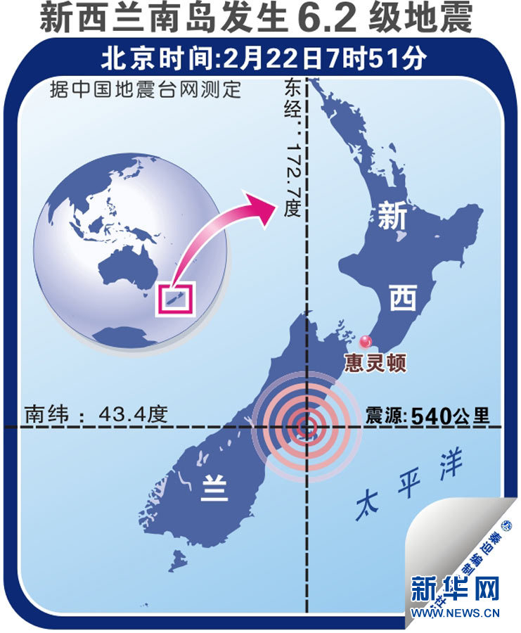 图表:新西兰南岛发生 6.2 级地震 新华社发