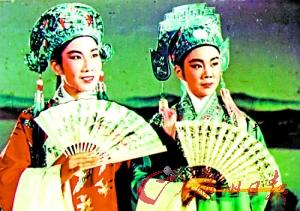 越剧电影《梁山伯与祝英台》剧照,袁雪芬(左)饰祝英台,范瑞娟饰梁山伯。