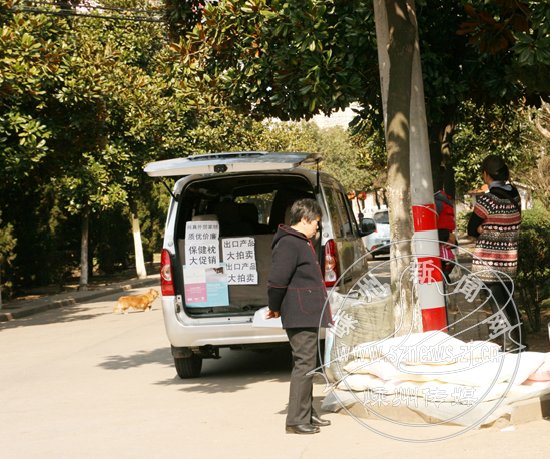 五爱幼儿园新兴园区对面,停放着一辆卖枕芯的面包车,一堆枕芯堆放在人行道上,还有人在招揽着顾客。如此设摊,有碍观瞻,实不应该!