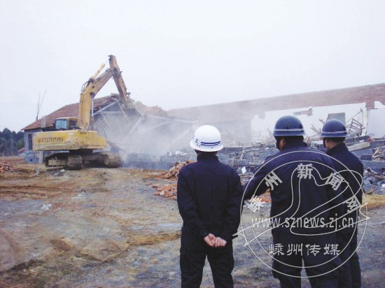 昨日早晨六点,嵊州经济开发区管委会组织城管、公安、国土等有关部门80余人,动用两台挖掘机对经济开发区王明堂村的违章建筑实施强制拆除。该违章建筑在土地卫片执法整改中属于拆除复耕范围,经多次责令当事人自行拆除整改未果,嵊州经济开发区管委会组织人员对其实施了强制拆除,共拆除违章建筑48间。