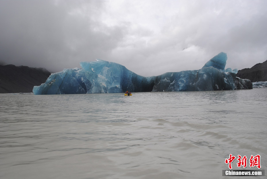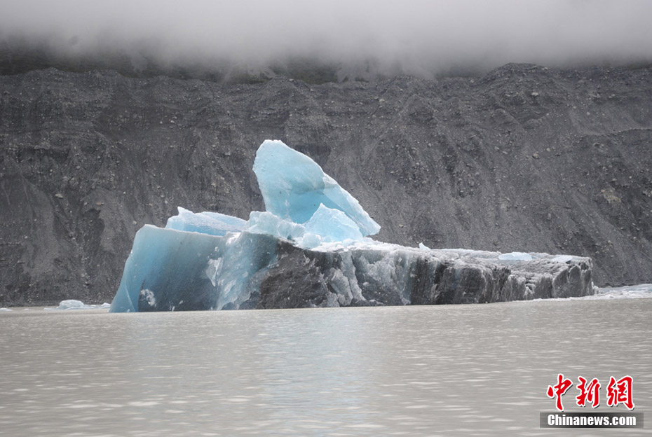 2011年2月22日,新西兰,塔斯曼湖:受地震影响,冰山造成塌陷,该湖位于克赖斯特彻奇市东南200千米处。新西兰南岛最大城市克赖斯特彻奇22日12时51分(北京时间7时51分)发生里氏6.3级地震,截止23日,已有75人在地震中遇难。地震也摇松了新西兰最长冰川近三千万吨冰,大量冰块涌入附近湖泊。