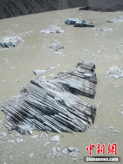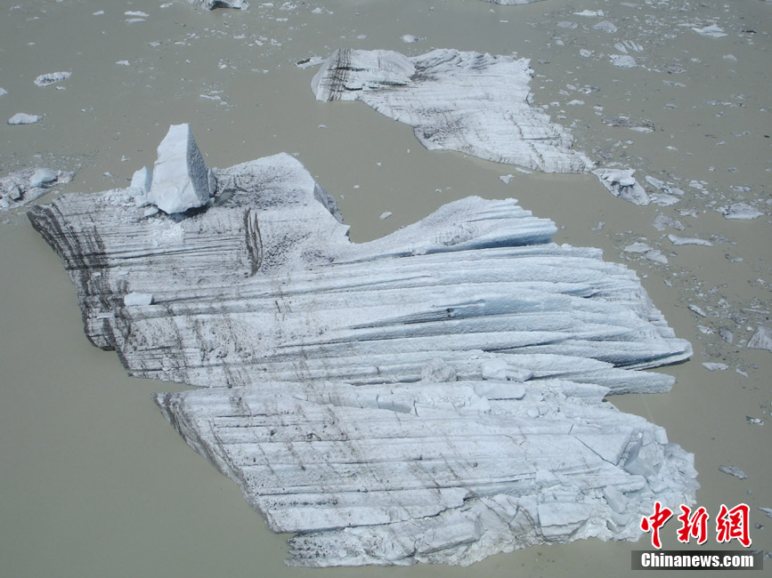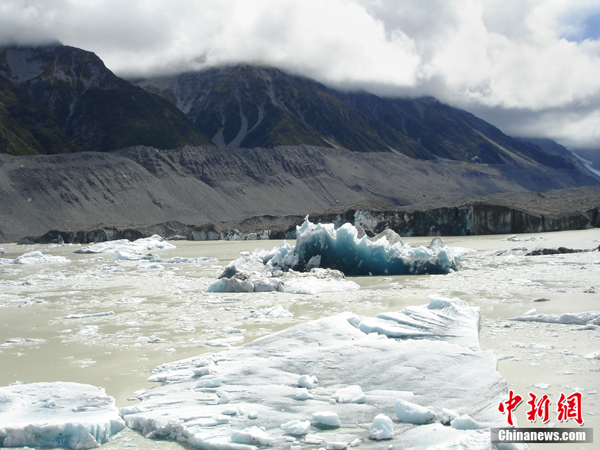 2011年2月22日,新西兰,塔斯曼湖:受地震影响,冰山造成塌陷,该湖位于克赖斯特彻奇市东南200千米处。新西兰南岛最大城市克赖斯特彻奇22日12时51分(北京时间7时51分)发生里氏6.3级地震,截止23日,已有75人在地震中遇难。地震也摇松了新西兰最长冰川近三千万吨冰,大量冰块涌入附近湖泊。