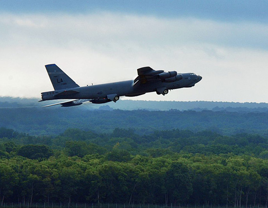 资料图:美国空军B-52型远程轰炸机起飞训练