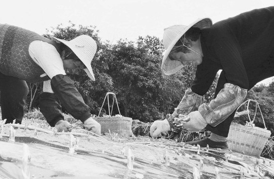 嵊州去年花木销售形势不错,特别是观赏花木,更成为市场上的香饽饽。好收成带动了农民引种紧缺苗木品种的积极性。近日,在嵊张公路两边的田野里,经常有花农在插种花木小苗。 (记者 张亮宗 摄)