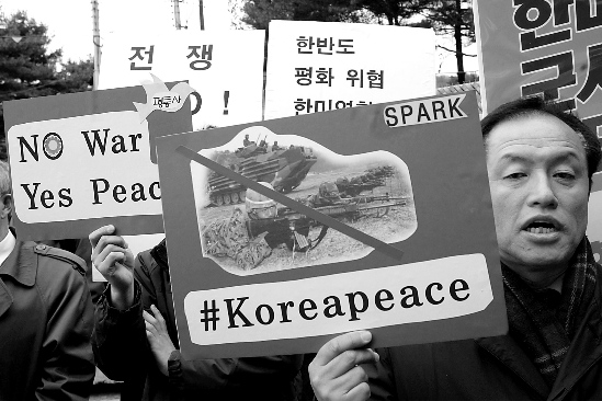 韩国民众集会反对韩美军演。 人民图片供图
