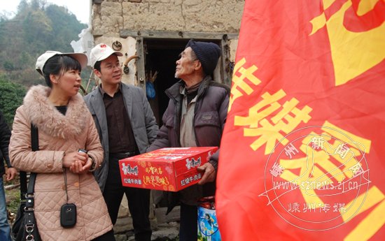 79岁的邢喜来一个人孤伶伶住在山岗上。一间10来平方米的泥墙屋,几张破竹椅,几乎就是老人全部的家当了。邢大伯是低保户,每个月能拿100多元钱,这让他能够维持最低生活水平。可是去年3月他去干活时,突然摔了一跤,直到现在,摔坏的腰还痛呢。腰痛要买药吃药,这就让他的日子显得紧巴巴的。老人接过爱心物资时,稀疏的胡子都激动得发起抖来。他说,共产党真好,如果没有共产党、没有政府养我,我这个糟老头早就饿死了。现在你们这些好心人还跑这么远的路来看望我,真好,真好!