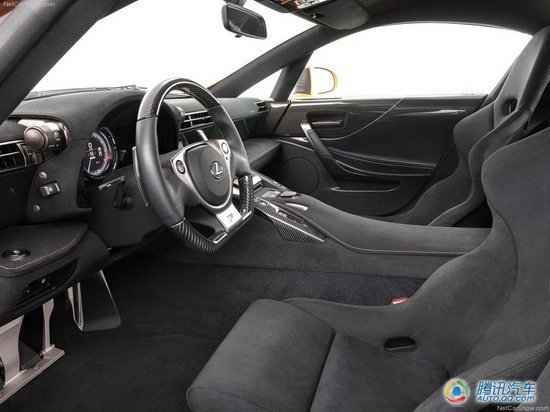 在可定制的部分,车型可以提供黑色、白色、橘红色以及亚光黑(选装版,需要多付20000美元)四种外观颜色;而内饰颜色也可以定制,可以选择包括黑/红、黑/紫以及纯黑色的三种内饰配色方案。当然了全碳纤维+真皮装饰的内饰、Alcantara提供的碳纤维运动座椅(外部包裹真皮)也是区别于普通LFA的不同之处。
